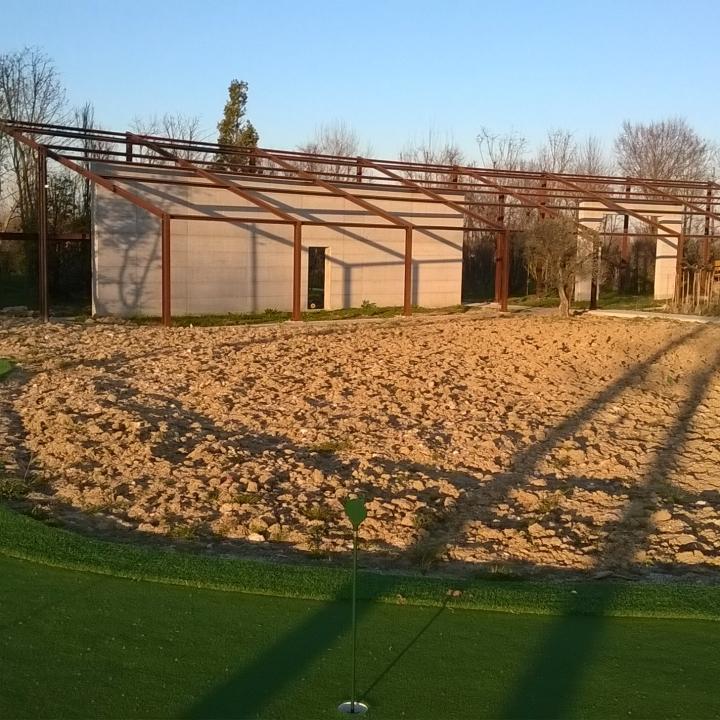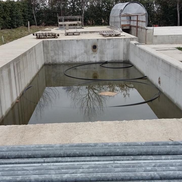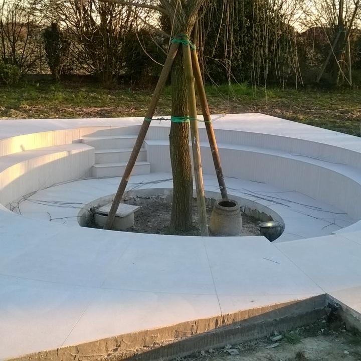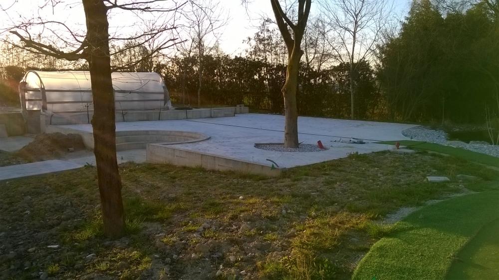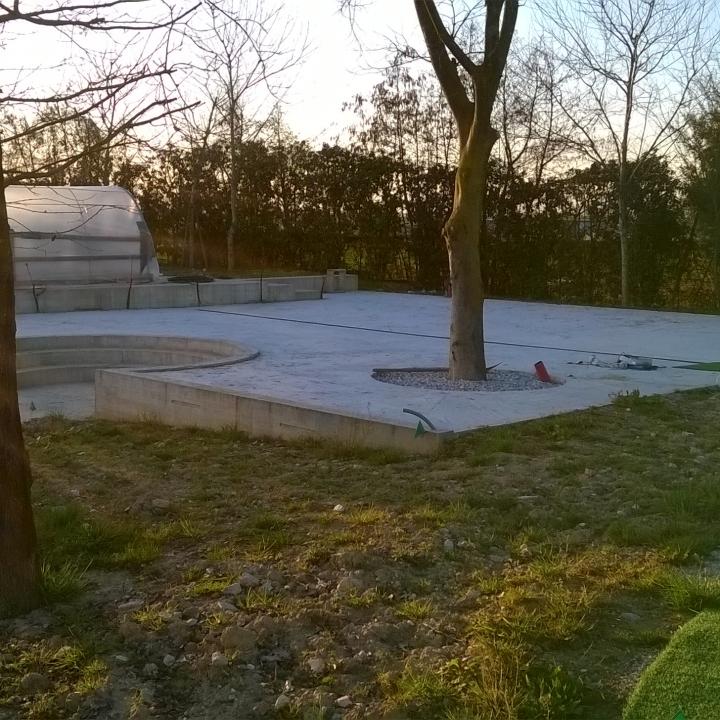 Abbiamo realizzato le opere murarie esterne, livellamento terreni, posa tubazioni per impianti d'irrigazione e costruito la piscina.